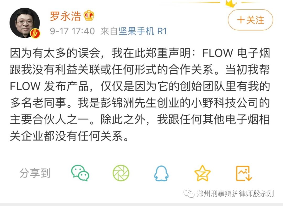 值得一提的是,锤子科技创始人罗永浩曾为该品牌站台,其在今年1月的一场发布会上宣布,前锤子科技核心成员兼产品总监朱萧木创办电子烟品牌“FLOW福禄”,并推出了品牌旗下第一款电子烟产品。但他此后又在微博上表示,与该品牌没有利益关联或任何形式的合作关系。