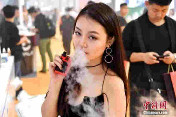 资料图:美女手持电子烟体验。 中新社