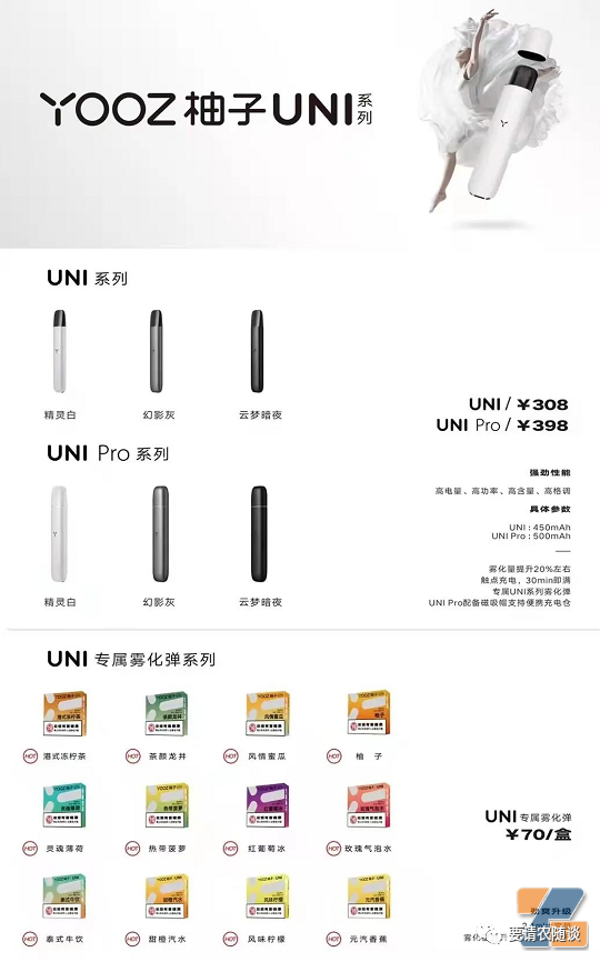 柚子五代电子烟UNI系列官网售价单杆装308元一套。